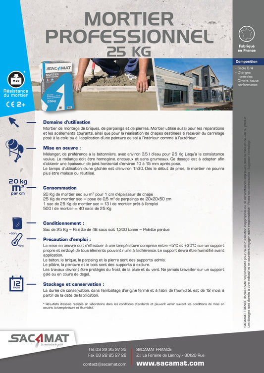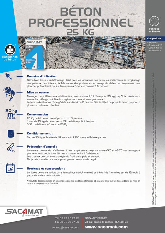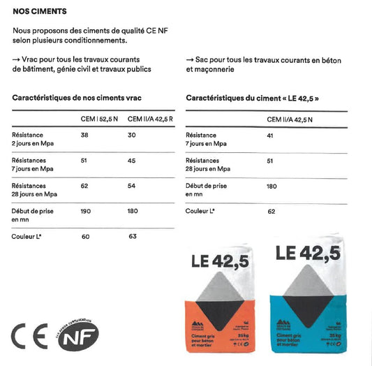 Ciment 42,5 N CEM II/ A-LL CE NF - Sac de 25kg
