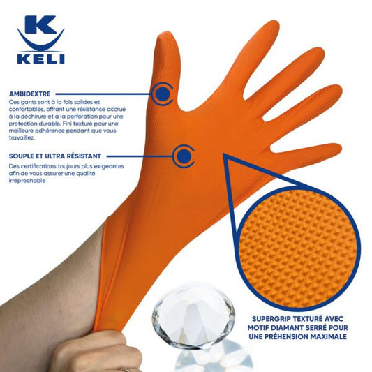 Gant Nitrile Jetable Orange Le Nigrip Structuré SuperGrip