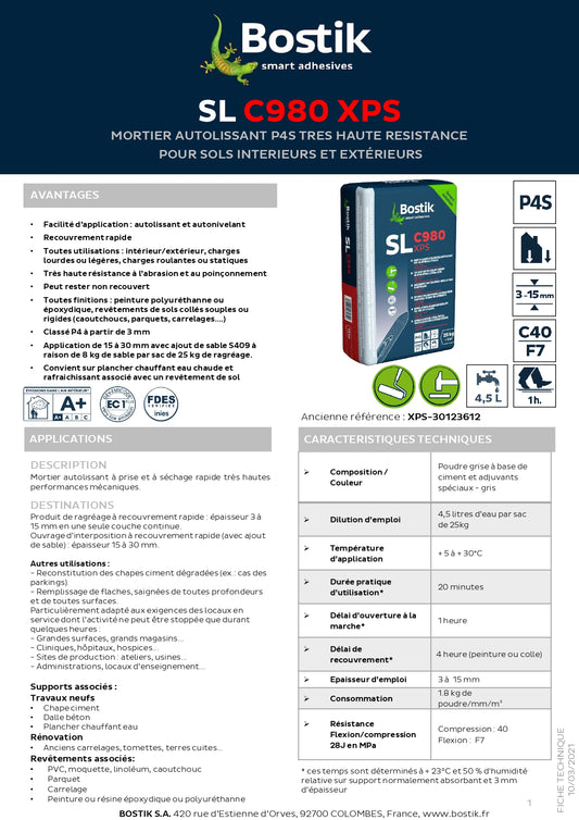 Ragréage P4S Fibré Autolisant - int/ext - SL C980 -25 KG